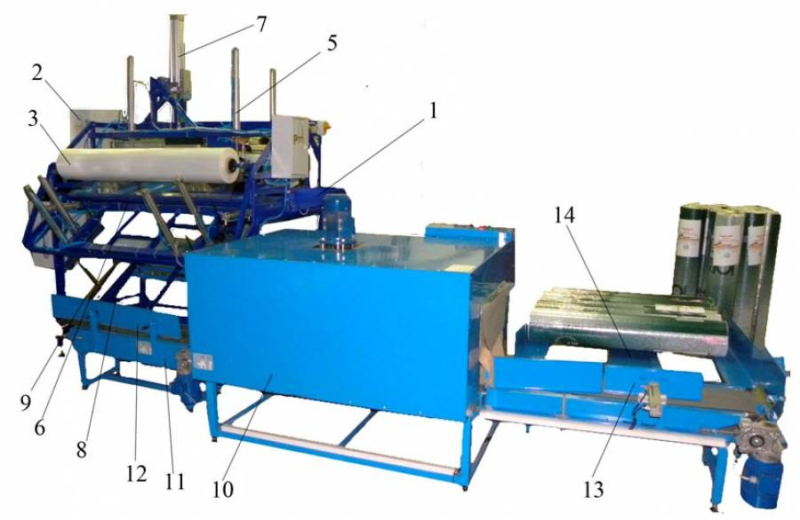 Автоматическая линия для упаковки методом обандероливания в термоусадочную пленку рулонных материалов с термоусадкой